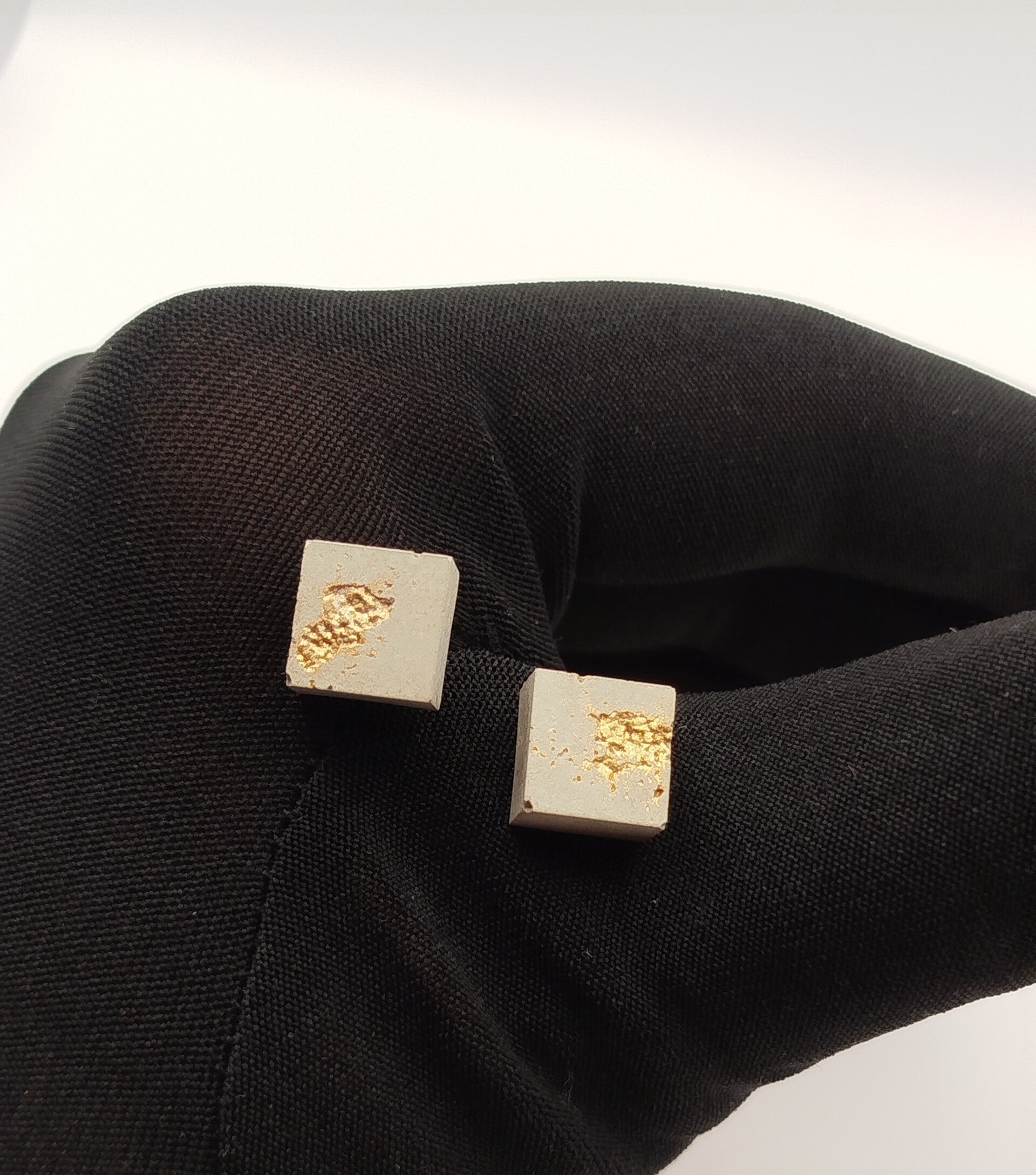 Schlicht, modern und dennoch außergewöhnlich – diese handgefertigten Ohrstecker setzen ein dezentes, aber wirkungsvolles Statement. Die Stecker in sanftem Grau werden durch feine Einschlüsse aus bronzefarbenen Blatt-Flakes veredelt, die jedem Paar eine individuelle Note verleihen. Perfekt für alle, die zeitlosen Minimalismus mit einem Hauch von Glamour kombinieren möchten.